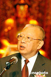 香港佛教暨各界迎请佛指舍利瞻礼祈福大会仪式,五月二十六日在香港会展中心举行,香港特首董建华在开幕礼上致辞。 作者:钱兴强