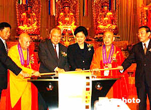 香港佛教暨各界迎请佛指舍利瞻礼祈福大会,五月二十六日在香港会展中心开幕,全国政协副主席、中共中央统战部部长刘延东、香港特首董建华、国家宗教局局长叶小文、香港中联办副主任王凤超、一诚法师、觉光法师出席启动仪式。 作者:钱兴强