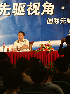 两岸关系历史回顾、陈水扁大陆政策走向、大陆对台政策走向、两岸关系前景预测、台海战争分析与评估……由北京的《国际先驱导报》主办的这场演讲中,安静的听众们很是认真,除了有人做笔录外,亦有人带去录音机。