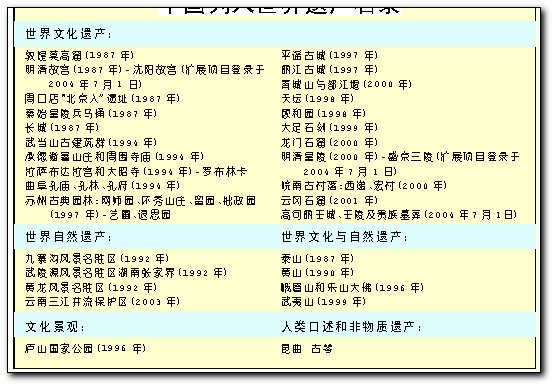 6月28日至7月7日,第28届世界遗产委员会会议在苏州召开,来自100多个国家的500余名代表聚首探讨人类保护世界遗产。到现时为此,已经有超过730个地点被纳入世界遗产名录。下面是部分世界遗产项目。