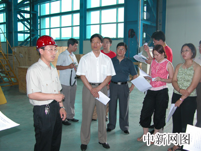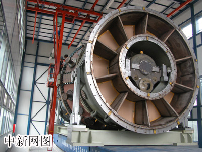 “网上河北行”采风团参观访问秦皇岛经济技术开发区中的哈尔滨动力设备股份有限公司,该公司展示了和美国GE公司组装成功的中国第一台大功率燃气式发电机组,价值逾3亿元人民币。(秦欣摄)  中国第一台大功率燃气式发电机组,价值逾3亿元人民币。(刘钢虎摄)