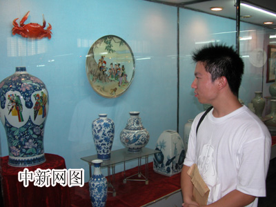 第二届“网上河北行”记者参观唐山陶瓷股份有限公司陶瓷展厅。(秦欣摄)