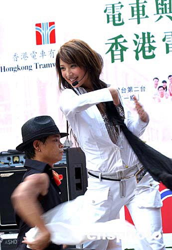 香港7月31日在时代广场举行“电车与你百载同行”百周年派对暨颁奖典礼活动﹐歌星郑希怡在仪式上献歌。作者:赵振清