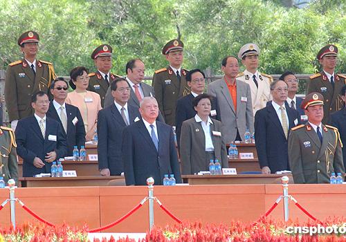 香港特首董建华、港府高官、社会名流和众多第二届立法会议员观看驻港部队首次公开阅兵仪式。作者:中新社