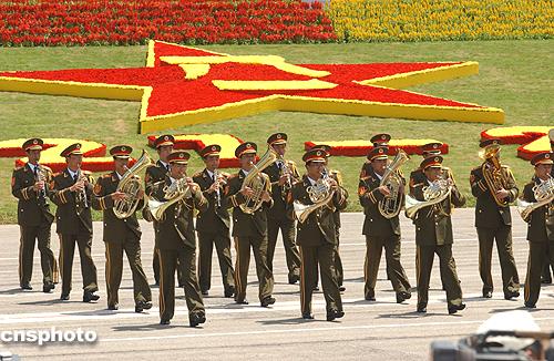 图:驻港部队军乐队演奏行进表演