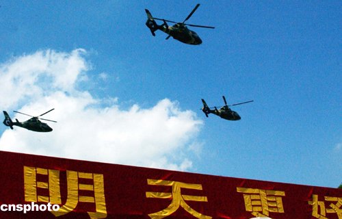 驻港部队直升机编队接受检阅。作者:钱兴强