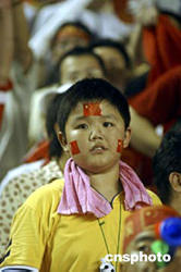 八月七日晚,二零零四亚洲杯决赛——中国对日本队的比赛在北京工人体育场举行,中国队以一比三负于日本,无缘冠军。图为小球迷失望。中新社记者:武仲林