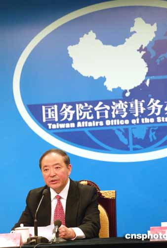 国台办经济局局长何世忠,一月十二日在北京举行的发布会上就两岸包机发表五点意见。作者:满会乔