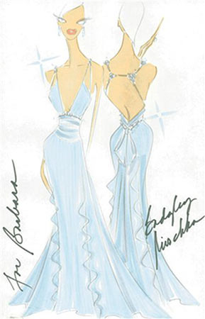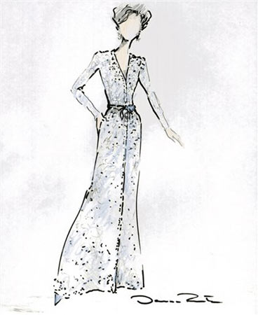 白宫提前公布了总统夫人与女儿当日出席布什就职典礼时所穿的礼服草图。