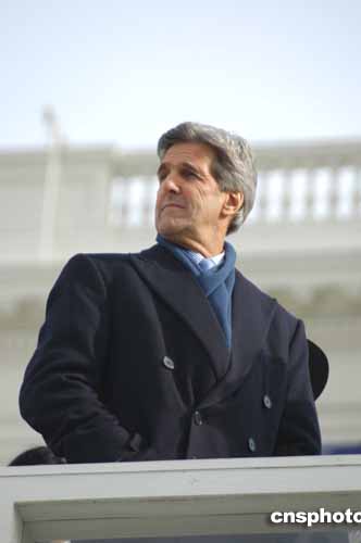 在去年底美国大选中败给布什的民主党参议员克里20日参加了布什就职典礼,坐在布什演讲台左侧的第七排。在整个仪式过程中,克里表情严肃,神情落寞。当布什宣誓完毕,全场欢呼时,克里有礼貌地鼓掌,他身旁的另一位嘉宾拍拍他的后背,似在安慰克里。作者:余东晖