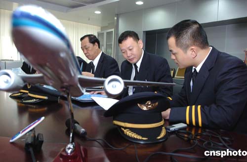 图为南航飞行机组人员在做飞行准备工作。作者:陈文