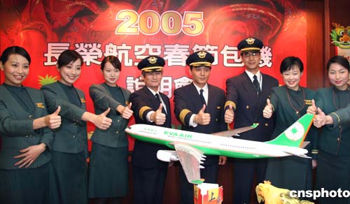 台湾长荣航空公司参加台商春节包机首航的机组人员二十七日下午与媒体见面。据悉,长荣航空此次将执行四个往返、共八个航班,往返台北——北京、台北——上海,时间分别是一月二十九日、二月七日和二月十五日。作者:邢利宇
