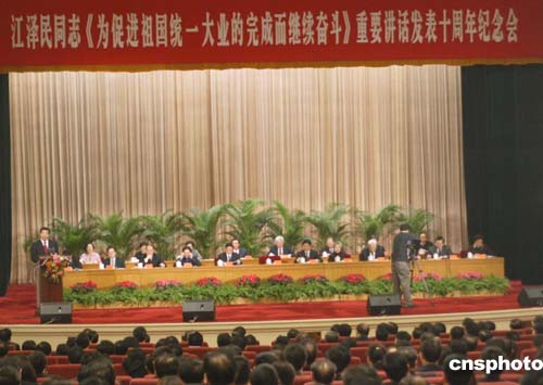 贾庆林在江泽民对台讲话十周年纪念大会讲话全文