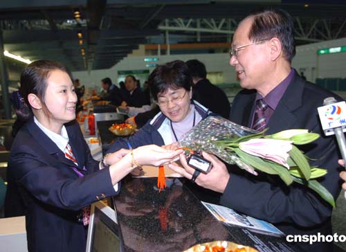 看好将来两岸航线,大陆与台湾共计十二家航空公司争先参与今年包机直航,并尽全力让这难得的四十八次空中旅行走得完满。两岸同业为此做出了周详规划,大陆国航空姐将著美丽的淡紫色旗袍,为台胞提供地道的贡丸汤、木瓜牛奶等台式餐饮;台湾长荣推出了谭府狮子头、八宝鸭等北京、上海菜,并为旅客准备了象征吉祥如意的麒麟吊饰和机长签名的“首航封”。
