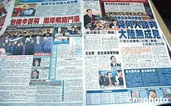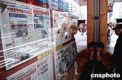 倍受关注的2005年台商春节包机1月29日启航,香港市民一早在报馆橱窗前浏览有关两岸春节包机启航消息。作者:洪少葵