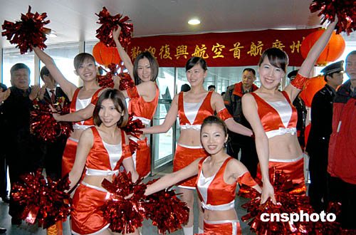 图为由六位空姐组成的啦啦队,清一色的红色短装,最惹人注目。作者:刘卫勇