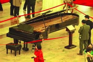昨天,在人民大会堂中央大厅摆放的一架大钢琴,吸引了很多人的围观,一些委员还利用会议间隙在此合影留念。钢琴前的铜牌介绍,这就是钢琴之王———世界上最大的钢琴,它还是在周总理的建议下才被制造出来的。