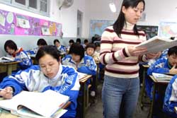 三月四日,北京市西城外国语学校西校区的高二学生利用午读时间阅读金庸武侠小说《天龙八部》的节选。金庸武侠小说《天龙八部》首次被选入中国全日制普通高级中学语文读本(必修)里,由人民教育出版社去年11月第一次出版,首次选入了王度庐的《卧虎藏龙》和金庸的《天龙八部》两篇武侠小说,分别排在第五课和第六课,并合为一个单元,取名为“神奇武侠”。作者:张勤