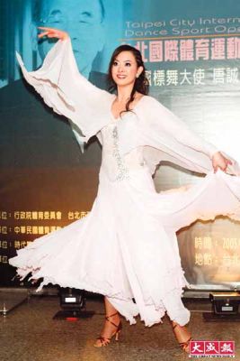 昨晚于台师大分部举行的“2005台北国际标准舞大赛”,邀请中国、丹麦等舞林高手飙舞。刘真特地以一身雪白舞衣,担任“国标舞大使”唐诚精采舞姿介绍人,她说:“唐诚67岁才开始学舞,我会有今天这成就,受唐诚影响很深。”