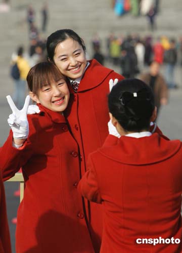 原来这位深受女记者欢迎的委员是《中国美容时尚报》社社长、美容专家张晓梅,女记者与之交流的皆为“怎样穿衣打扮”、“如何化妆美容”之类的闺闱话题。这些职业丽人暂时告别激烈的新闻“武装冲突”,流露钟爱“红装”的天性,为“两会”增添别样风景。