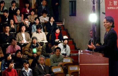 “我们对朝鲜提出了各种各样的鼓励措施、均衡措施,我可能是第一个承认与朝鲜打交道不容易的人,”赖斯今天在日本东京上智大学发表演讲时说。该演讲被普遍认为是对美国亚洲外交政策上的阐述。