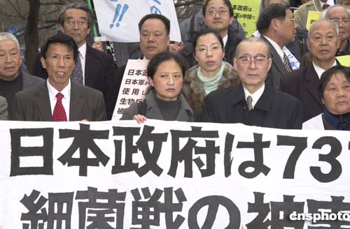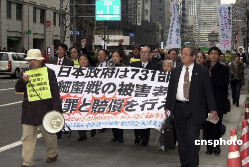 侵华日军细菌战受害诉讼,三月二十二日在东京结束二审。庭审结束后,原告团王选(中)等人和中日两国民间后援人士在东京市中心举行集会,要求获得公正判决,并呼吁日本政府正视历史。作者:王健