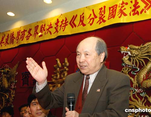 当地时间三月二十六日,美东侨学商各界举行誓师大会坚决支持《反分裂国家法》,旅美台胞成功教授指出,“台独”势力歪曲《反分裂国家法》,意在误导台湾民众。作者:龚文谟