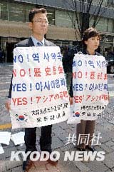 韩国市议员抗议日本通过歪曲历史的教科书(图)