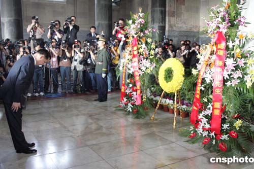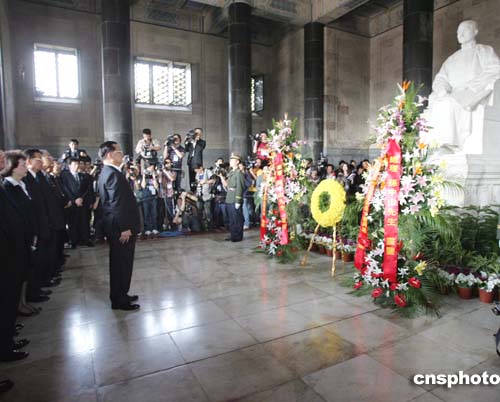 连战一行八点五十分左右到达中山陵,为迎接连战主席的到来,中山陵特为他开启了中间的大门。从博爱坊开始,走过石阶三百九十二级,来到中山陵祭堂。
