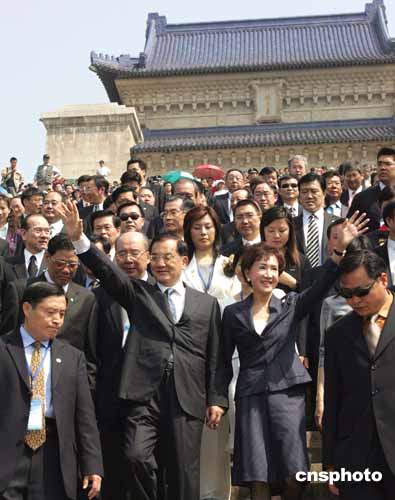 今天,得知连战将率中国国民党大陆访问团在南京拜谒中山陵,近万南京市民自发来到中山陵,欢迎连战一行。