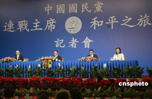 有台湾记者在记者会上提问,我们刚听到你们达成的所谓的新闻公报或者是共同愿景,在台湾可能会关心的是,这两部分是不是有文字或者文件?我们记得江副主席来大陆的时候民进党说他有违法之嫌,所以你们这些共识有没有述之于文字。但是要恢复对话,通过这样的机会向民进党喊话之外还有没有更具体的做法。如果民进党不配合或者不愿意接受你们今天的善意的谈话的话,会不会让你们这一趟的和平之行的成果会受到影响?