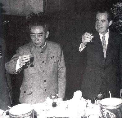 汽车到达体育馆,敏感的日本记者发现两人站在一起愉快地聊着,用照相机摄下了这个镜头。第二天,日本三大报《朝日新闻》、《每日新闻》、《读卖新闻》的头版显著位置,图文并茂地刊载了两人握手、交谈的图片,有的还加了横栏标题:中美接近。