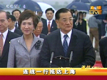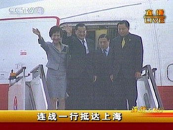 快讯:中国国民党主席连战一行抵达上海浦东机场