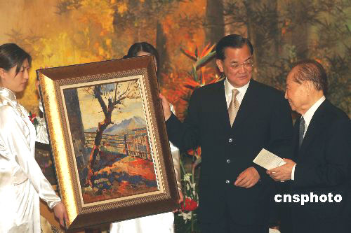 会见中,汪会长向连战主席赠送了北京一位九十多岁的名画家秦云岭所画的《江山如画》及一九八三年与一九九六年在大陆出版的连老先生两本著作;连主席转交了辜振甫夫人的一封信给汪会长,并向他赠送了辜先生年青时代居住阳明山俯瞰纱帽山所创作的一幅油画的复制品、台湾琉璃名家王侠军作品《宏图》以及祖父连横先生名作《台湾通史》与他个人著作《改变,才有希望》。