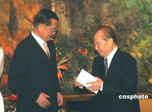 连战说,汪老是为两岸和平交流创造历史的人物,我对此十分感佩;访问团到上海,汪老能拨出时间与访问团人士见面,非常感谢。