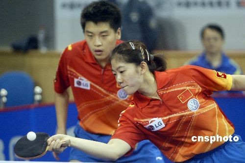 图:世乒混双比赛郝帅、牛剑锋顺利晋级