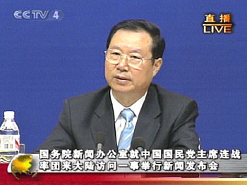 有台湾记者在记者会上提问:熊猫的魅力可以跨过海峡两岸,是否可以顺利赴台湾,现在有人把熊猫冠上“统战”的字眼,台湾地区领导人说熊猫赴台不是“统战”的问题,是涉及“华盛顿公约”的问题,“华盛顿公约”已经有涉及“进出口国”敏感的字眼,王主任怎么看?是否会形成熊猫赴台的障碍?大家很关心,熊猫究竟从那儿送?是从四川、北京、上海、福州送,各有不同的意义,哪里送比较适当?台北市长马英九说打算送台湾猕猴给大陆?王主任怎么看?是否打算用动物来打开两岸对话的平台?