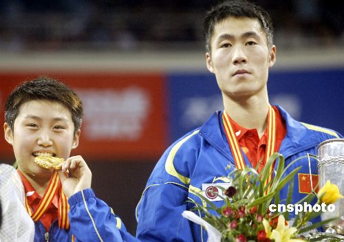 图:王励勤、郭跃夺得第48届世乒赛混双冠军