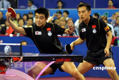 孔令辉/王皓以四比一赢得了决赛胜利,夺得世乒赛男子双打冠军奖杯——伊朗杯。这是中国队历史上第十二次获得伊朗杯,同时也是自一九九三年瑞典哥德堡第四十二届世乒赛后,中国队连续第七次夺得伊朗杯。