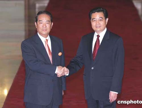 下午3时许,中共中央总书记胡锦涛与亲民党主席宋楚瑜在北京人民大会堂北大厅握手。这是中国共产党和亲民党两党最高领导人首次会面。