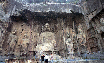 龙门石窟是我国著名的三大石刻艺术宝库之一,位于洛阳南郊12公里处的伊河岸边,此处东西两山对峙,伊水东流,望之若阕,故称伊阕。经过自北魏至北宋400余年的开凿,至今仍存有窟龛2100多个,造像10万余尊,碑刻题记3600余品,数量之多位于全国各大石窟之首。其气魄之博大,蕴涵之深邃,雕刻之精湛,堪称世界雕塑艺术宝库中光彩夺目的奇葩。