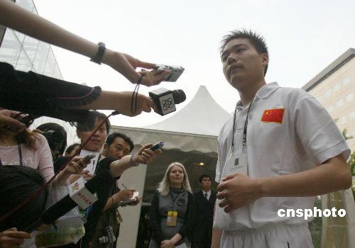五月十五日,二○○五财富全球论坛在北京举行体育圆桌会欢迎酒会,亚运会中国台球神童丁俊辉参加酒会并接受媒体采访。作者:廖文静