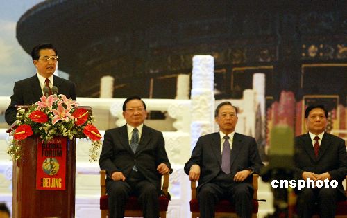 图:胡锦涛在《财富》全球论坛开幕式上作主题演讲
