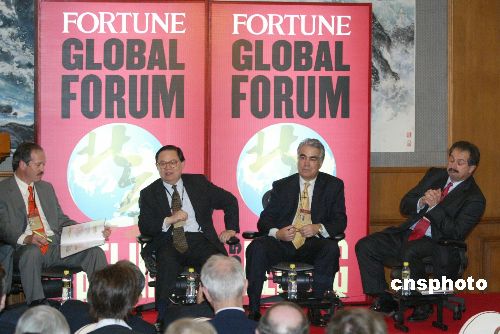 五月十七日,二○○五北京《财富》全球论坛在北京举行“在亚洲经商之前景:理解什么奏效”专题讨论会。作者:廖文静