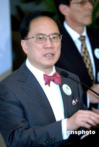 香港十六日自动当选的行政长官曾荫权﹐在当日晚举行记者会上答记者问。作者:宋吉河