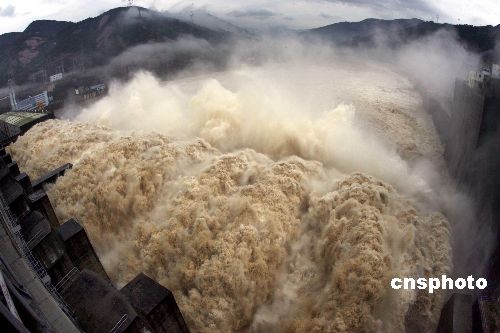 6月21日11时,闽江第三次洪峰顺利通过水口大坝,汹涌澎湃的洪水从水口水库12孔闸门奔腾而下。据省气象台预报,今明两日,南平、三明两市天气阴有大阵雨或雷阵雨,部分县市有暴雨或大暴雨,闽江上游22日将出现五十年一遇的洪水,水口水库正全力以赴做好迎接第四个洪峰到达的准备。作者:杨婀娜