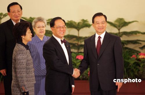 图:香港特区行政长官曾荫权宣誓就职 温家宝、吴仪出席仪式