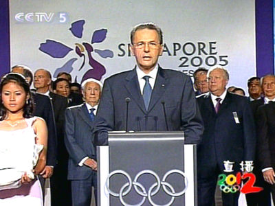 主办城市选举的悬念留到了最后一轮,由伦敦“决斗”同样强大的巴黎。在这轮的投票选举中,双方没有让国际奥委会主席罗格难堪的战成平手,而是高下立分。在经过一段让人几乎窒息的等待之后,一位华裔新加坡女孩把放有结果的信交给了罗格。罗格在感谢了东道主新加坡民众、此前提出申请的国家和五个候选国家后,向世人大声宣布:国际奥委会决定,把第30届奥运会的主办权交给伦敦!