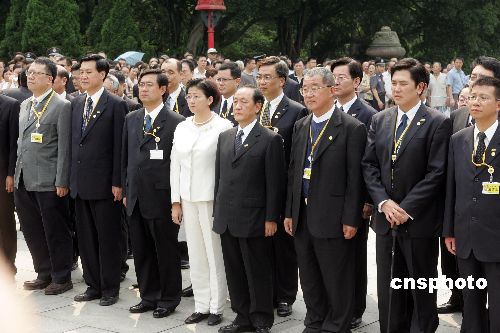 新党主席郁慕明率领的新党“民族之旅”访问团七月七日拜谒广州黄花岗七十二烈士陵园。作者:毛建军
