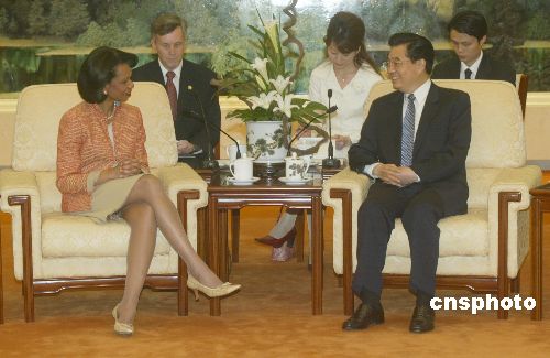 中新社北京七月十日电(记者李静)中国国家主席胡锦涛十日会见美国国务卿赖斯时表示,相信赖斯此次访华将有助于双方加强沟通,增进理解,促进合作,有助于促进中美关系健康稳定地向前发展。